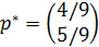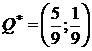 стратегий игроков необходимо, чтобы M(x,y*)≤ M(x*,y*)≤ M(x*,y). Это выполняется при x*=4/9 и y*=5/9, так как именно в этом случае M(x , 5/9) = M(4/9