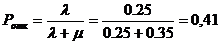 установившемся режиме из каждых 100 заявок в среднем 41 получают отказ.