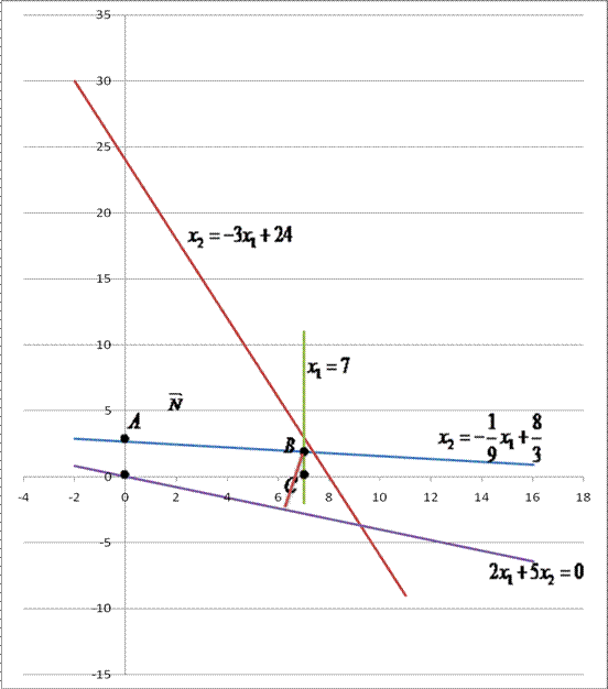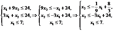 значения функции F=c1x1+c2x2+c3x3, где переменные xj≥0 (j=1;2) – планируемое количество единиц j-й продукции, а сj прибыль на единицу j-й продукции при