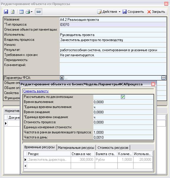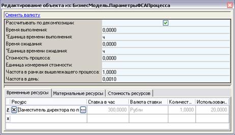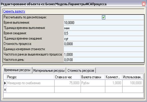 «Стоимость процесса» и «Частота в рамках вышележащего процесса» для