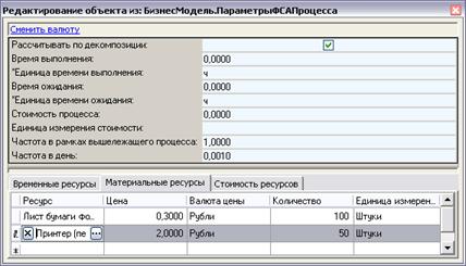 материальных ресурсов = Цена * Частота в рамках вышележащего процесса *