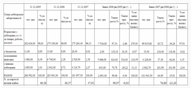 Таблиця В.7 Склад і структура дебіторської заборгованості