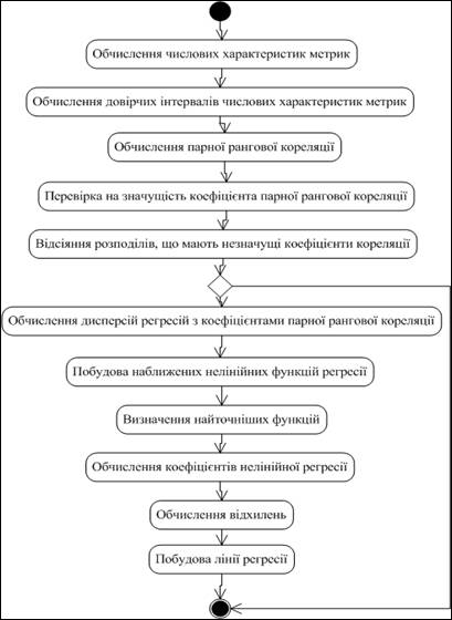 залежності між метриками ПЗ та експертною оцінкою властивості ПЗ. Метрики