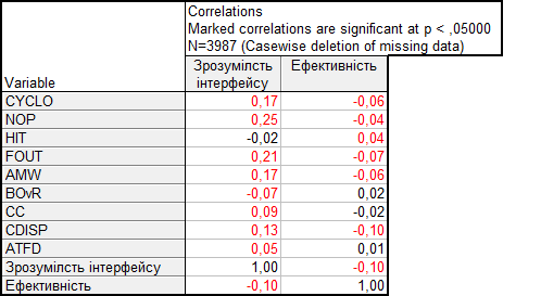 проведенні кореляційного аналізу було за допомогою пакету Statistica