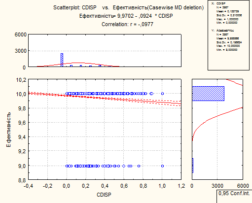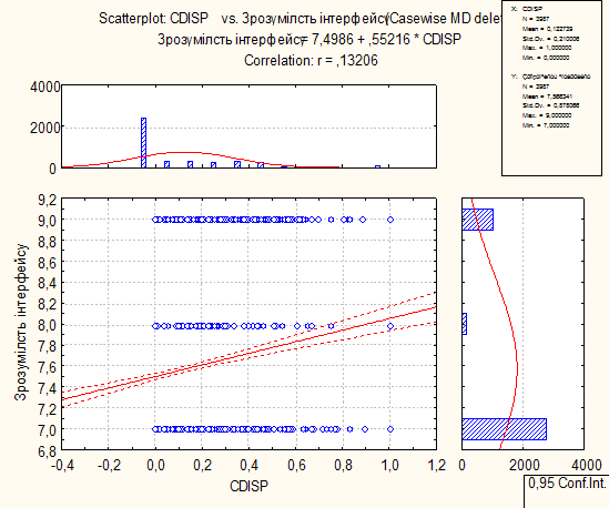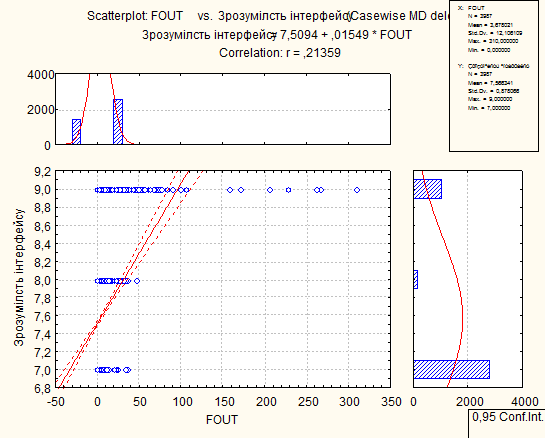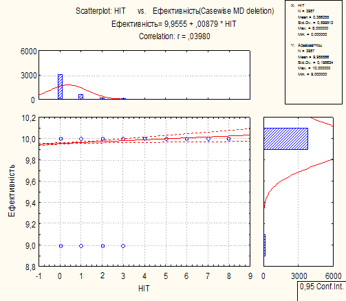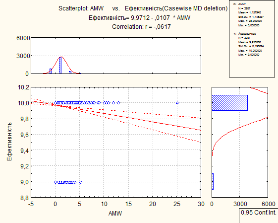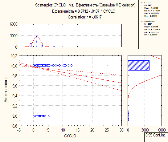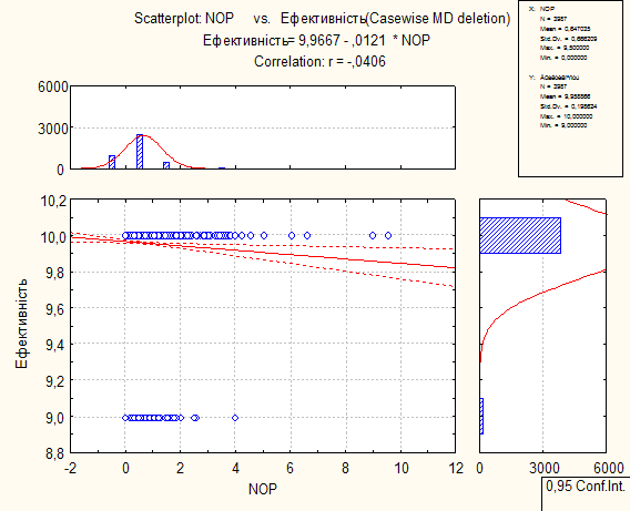 аналіз з кореляційними полями та розрахованими коефіцієнтами кореляції, та