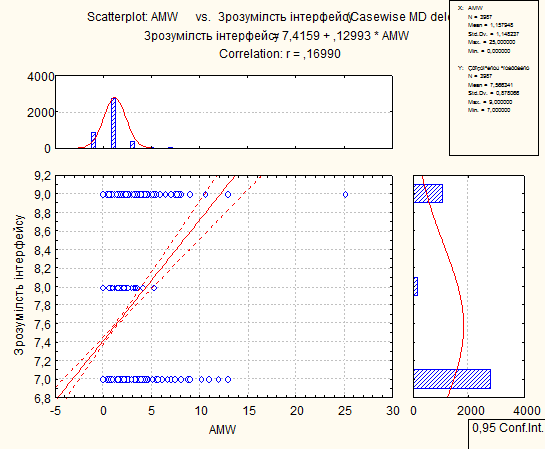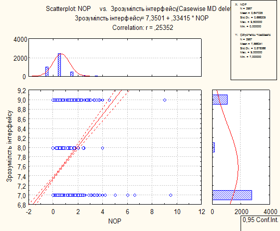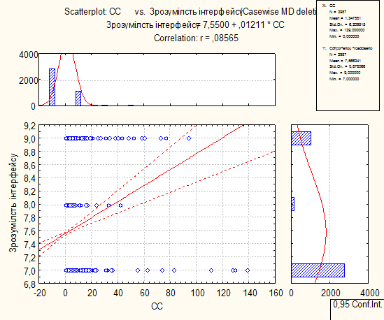 статистичний аналіз із гістограмами метрик, експертної оцінки властивості ПЗ та