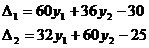 ограничения нужно преобразовать в равенства. Для этого введём две дополнительные