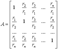 обеспечения согласованности примем аij = 1/аji. Оценки аij составляют матрицу S