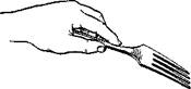 отрезании куска мяса, например, а локоть левой — при поднесении вилки ко рту