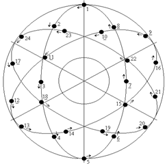 оси вращения Земли. Все НИСЗ и орбиты находятся на сфере радиуса а. На эскизе