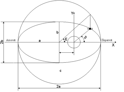 достаточным количеством точек, получим проекцию орбиты - эллипс, малая полуось
