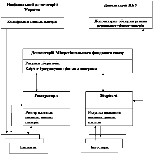 депозитарій) і депозитарії, що ведуть рахунки для зберігачів та здійснюють