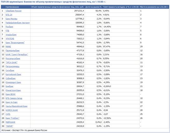 роста в сентябре 2008 г. В лидерах три госбанка: им сегодня