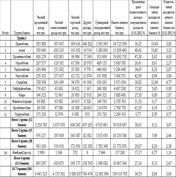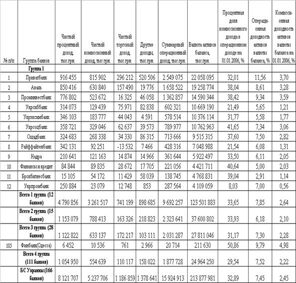 основных банков Украины с остальными 145 банками уровень комиссионных доходов имеет