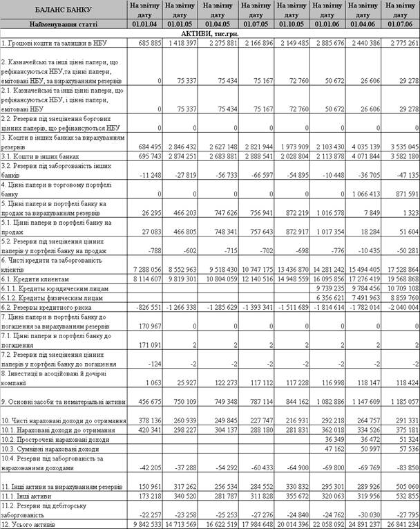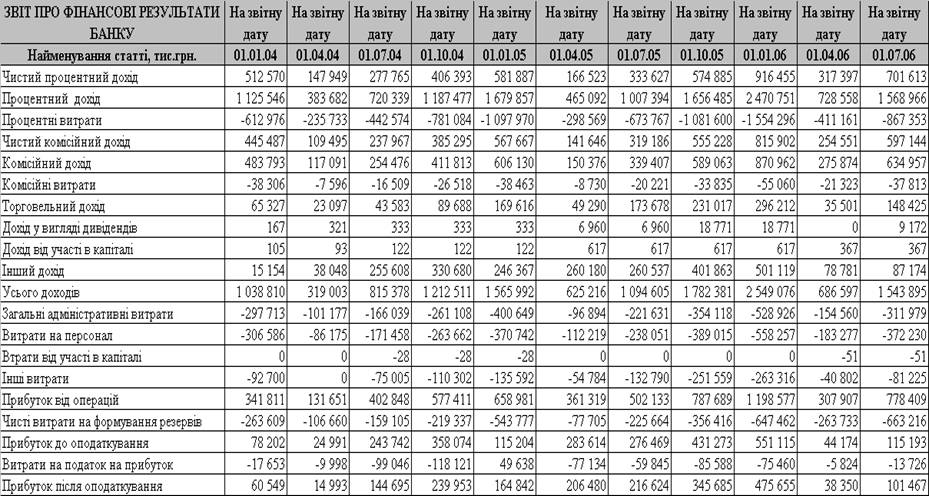 «Приватбанк» за 2001 - 2006 года, информационные материалы Национального банка Украины,
