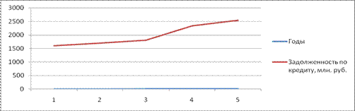 графическое изображение динамики кредиторской задолженности за 5 лет.