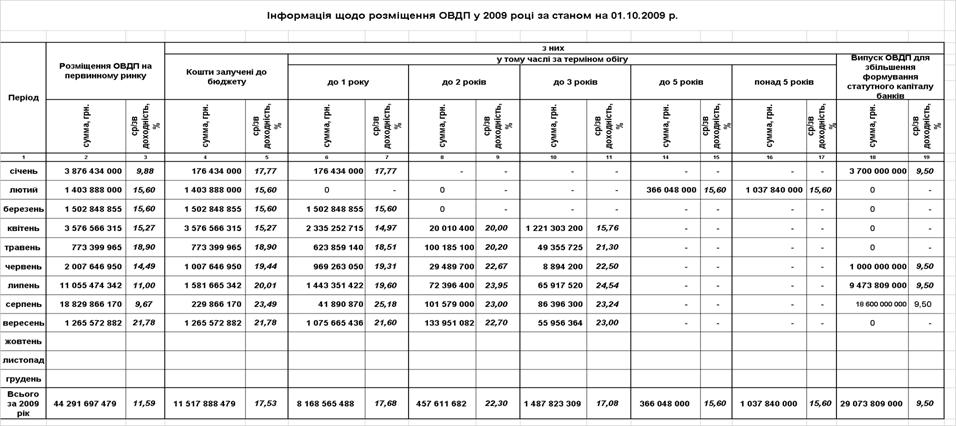 Розміщення облігацій внутрішньої державної позики ОВДП у