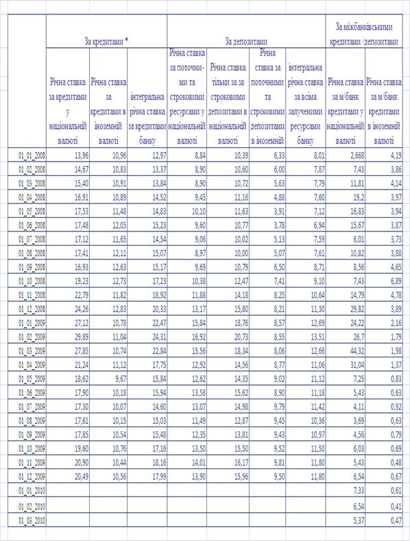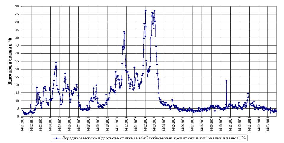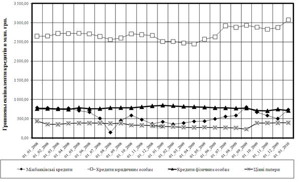 міжбанківських кредитів в національній валюті в докризовий, кризовий та