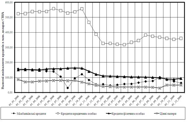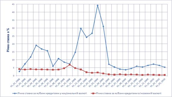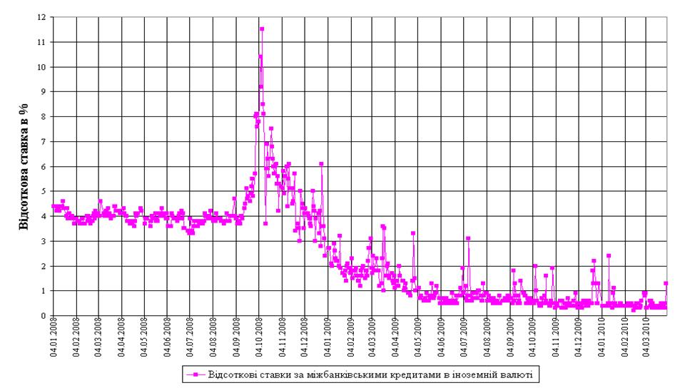 міжбанківських кредитів в іноземній валюті в докризовий, кризовий та