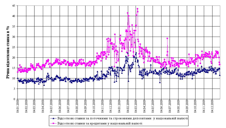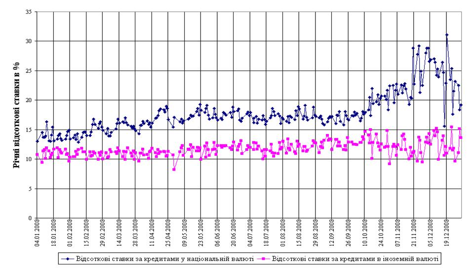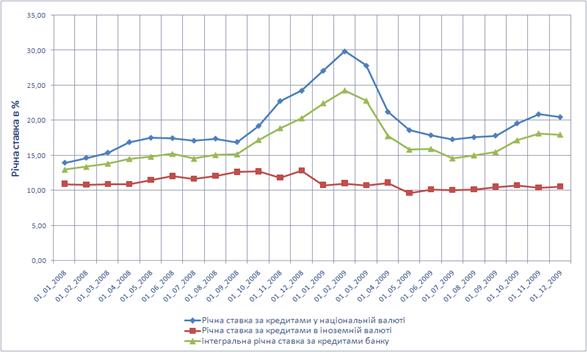 Рис.Л.8 Динаміка середньозважених ставок кредитів та
