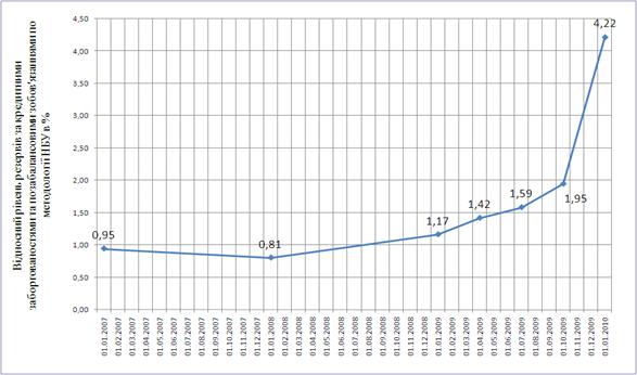 рівня резервування кредитних ризиків в сумарному кредитному портфелі