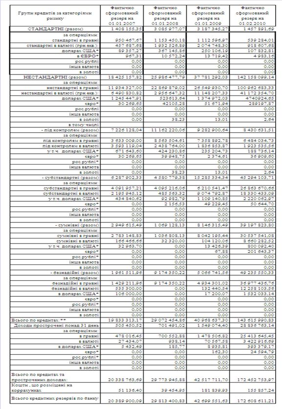 визначення кредитних ризиків та створення оптимального рівня резервів на кредитні