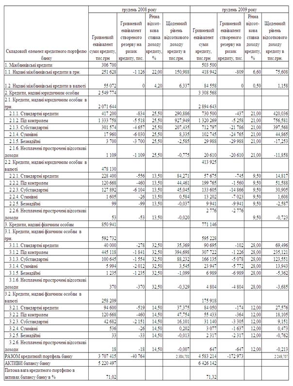 кредитного потрфелю банку, а також оцінка адекватності отриманих показників