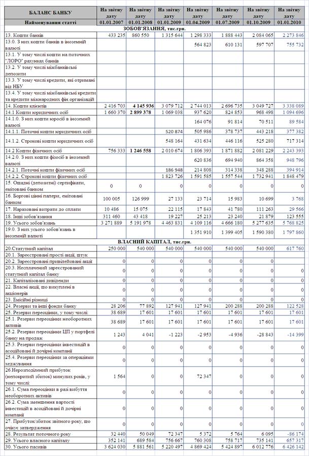 діяльності ПАТ КБ «Хрещатик» за 2006 – 2009 рр
