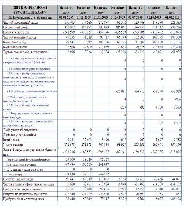 Звіти про фінансові результати діяльності ПАТ КБ «Хрещатик»
