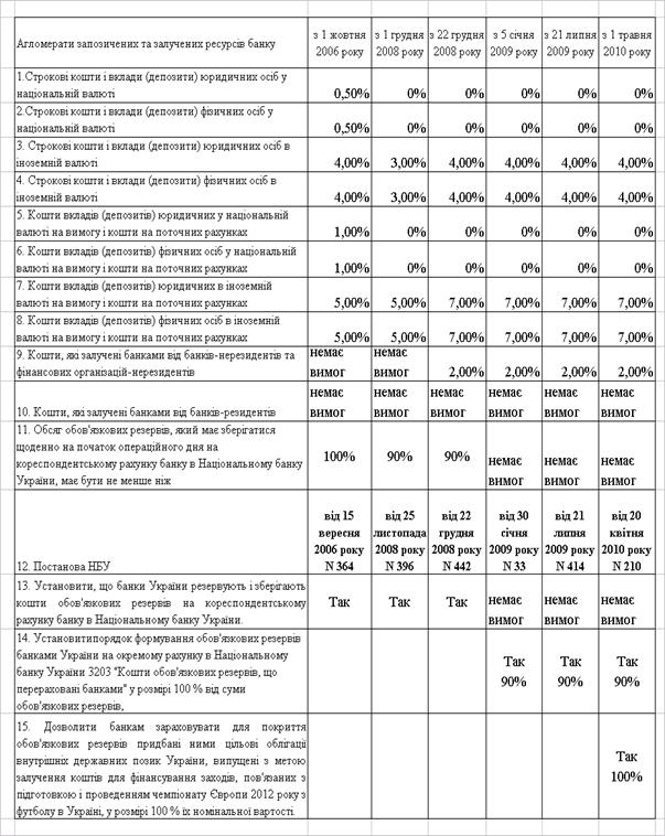 Управління обов’язковими резервами залучених та