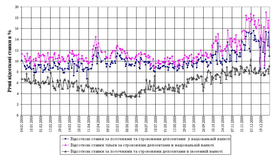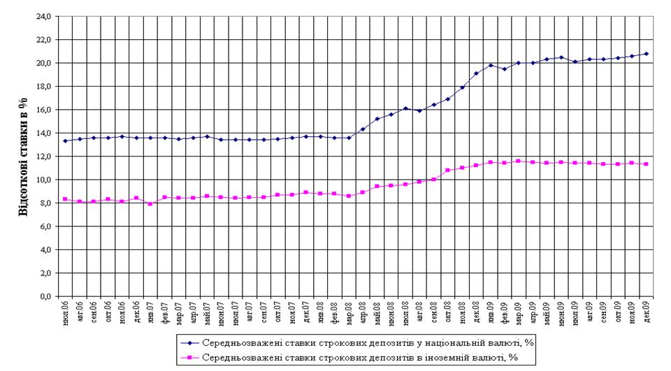 Рис.Л.3 Динаміка середньозважених ставок депозитів в