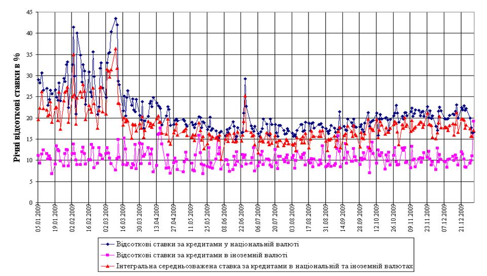 Рис.Л.5 Динаміка середньозважених ставок кредитів в
