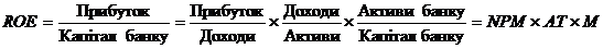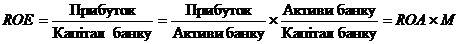 банку оцінюють показниками ROE (прибутковість капіталу) та ROA (прибутковість активів),
