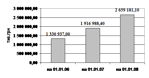 Рис. 3.2. Динаміка іпотечних кредитів ВАТ "Кредобанк" станом на 01.01.2008 року