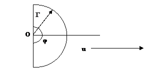 центром, соответствующем источнику заражения, углом j = 180°, радиусом полуокружности равном Г=5
