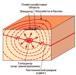 фокусом, очагом или гипоцентром, а точка на земной поверхности над очагом — эпицентром