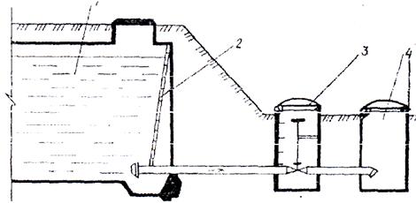 – лестница, 3 – колодец с задвижкой, 4 – приемный колодец вместительностью 3…5