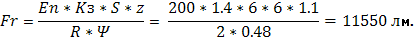 світильників і до перекриття hс =