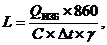 где С=0,24 ккал/(кг x °C) – теплоемкость воздуха,