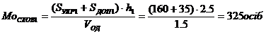 осіб. Оцінивши місткість сховищ за площею та за об’ємом, беремо найменші значення: