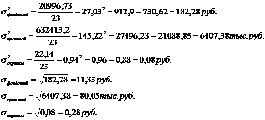 продукции в них. Для этого для каждого района и в среднем по совокупности