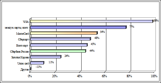 и услуг. Проведение операций с помощью платежных карт показывает степень