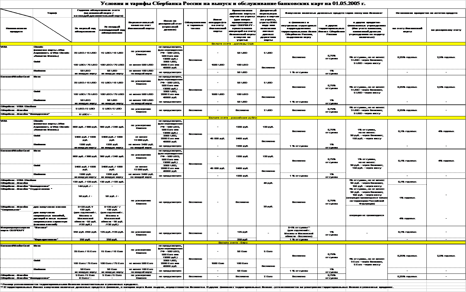 [16] Приложение 3: таблица 2.1 «Условия и тарифы Сбербанка