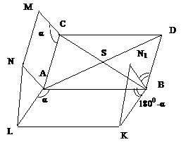 , угол между прямыми AS и LN равен