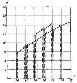 = 2 м, в средневозрастных древостоях l2 = 4 м, а в приспевающих и спелых насаждениях l3 = 6 м.