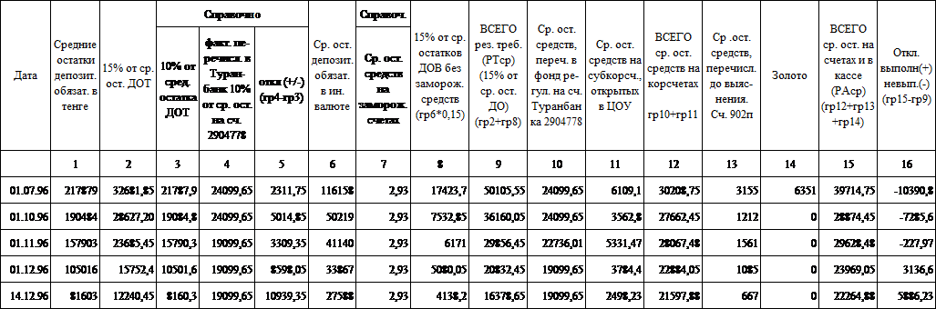 Расчет коэффициентов ликвидности для Алматинского управления Туранбанка и их