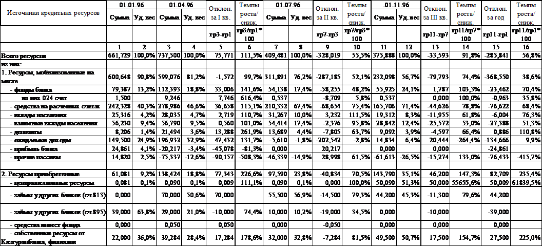 временной динамики данной категории ресурсов и кредитных вложений. Временной