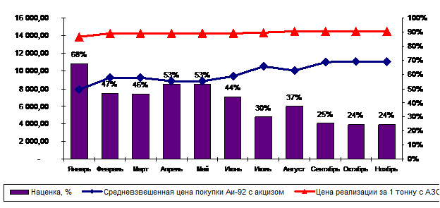 цены на нефтепродукты по городу можно выявить следующую тенденцию, что в