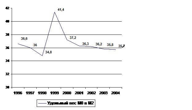 денежной массы приходится на наличные деньги. Причем этот денежный агрегат уменьшается,