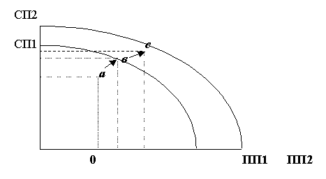 производственных возможностях страны, обозначенных кривой СП1ПП1.